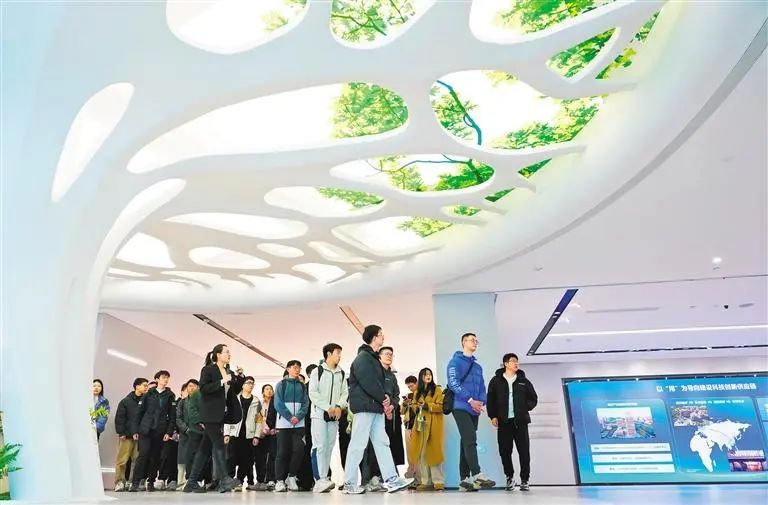 11月28日,来自华中科技大学的师生在武汉产业创新发展研究院展厅参观