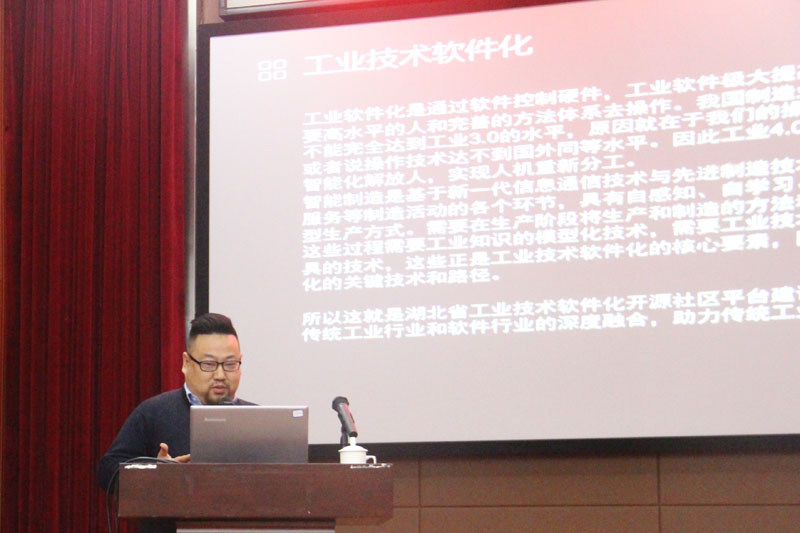 作为我省工业互联网建设的重要交流平台和技术支撑平台,湖北工业技术软件化开源社区演示测试版已上线试运行。武汉深之度科技有限公司销售总监吕可介绍了工业技术软件化开源社区建设目标、功能、进展及后续工作等,倡议工业企业、软件企业共同参与开源社区建设,通过开源社区平台进行供需对接,提供众包服务,开放开发工具、知识组件、算法组件等工具包(SDK)和应用程序编程接口(API),推动重点行业基础共性技术的模型化、组件化、软件化与开放共享,促进基于工业互联网平台的工业知识沉淀、传播、复用与价值创造。