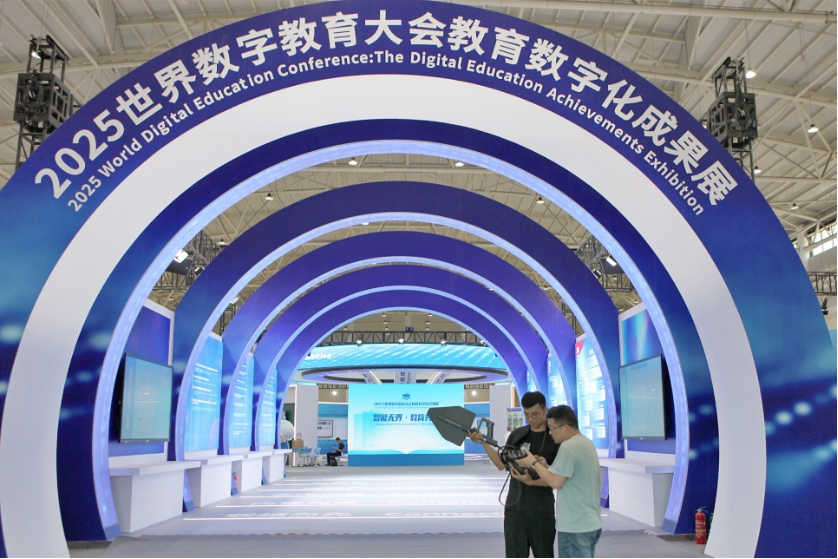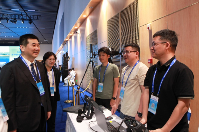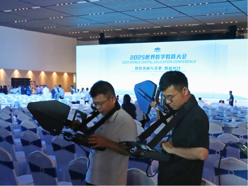 朱万奎(左一)现场指导2025世界数字教育大会开幕式无线电安全保障