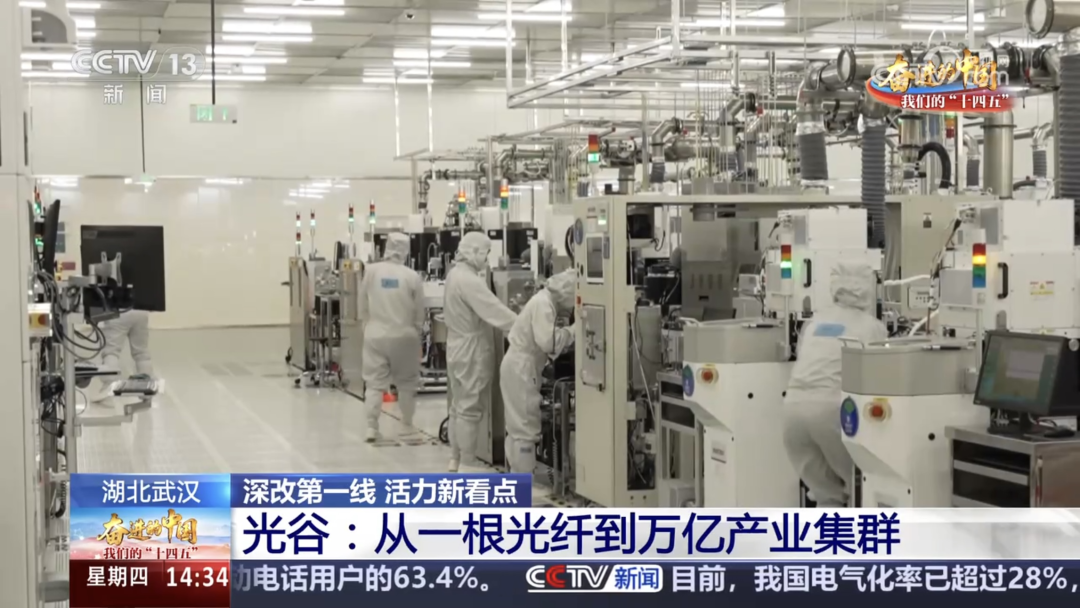 近日,央视特别节目《奋进的中国——我们的“十四五”》“深改第一线 活力新看点” 栏目播发报道《从一根光纤到万亿产业集群 武汉光谷蝶变的密码是什么?》,聚焦“十四五”期间湖北省“建成支点、走在前列”的中部崛起新篇章,介绍了中国光谷从一根光纤到万亿产业集群的发展跨越。以下转载相关内容。