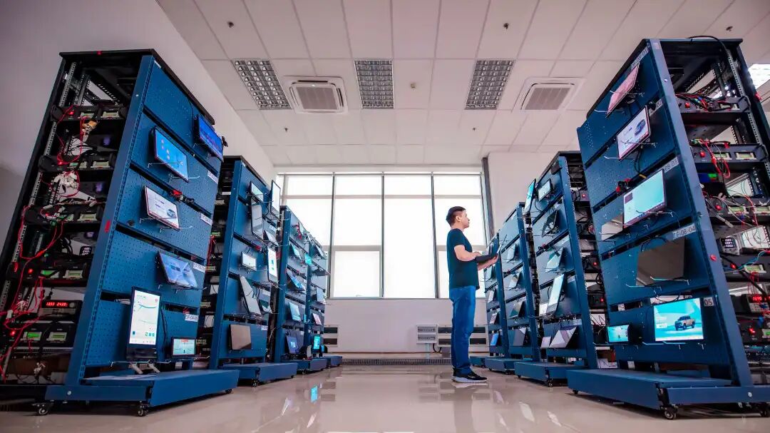 ▲工程师们正在进行硬件在环仿真(HIL)测试。