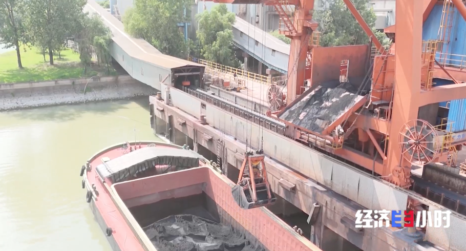 江苏南京的钢铁原料码头,满载铁矿粉的货轮正排队等待靠泊。卸料门机舒展巨臂,在一起一落间,将原料送入皮带管廊。