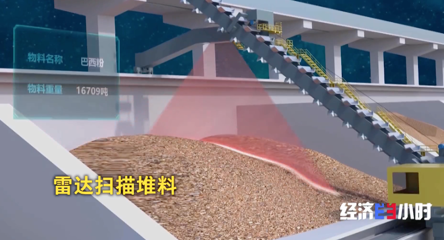 如今,智能盘库系统当上了“原料管家”。安装在刮板机一侧的毫米波截面扫描雷达,快速扫描堆料,凹陷凸起都能精准还原。