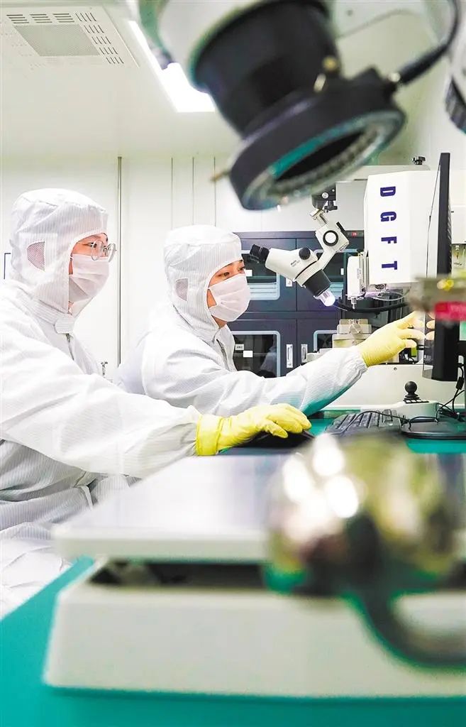 11月29日,中国光谷九峰山实验室,科研人员在进行研发、检测工作。该实验室去年投入运营,已有多项重大科技成果走出实验室,实现量产