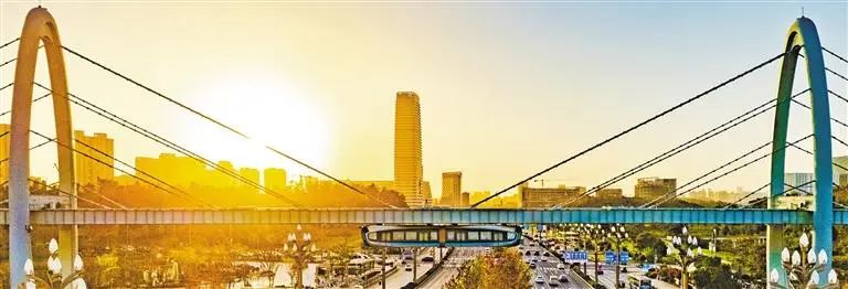 11月28日,“光谷光子号”空轨穿过武汉东湖高新区高新大道。这是国内首条空中悬挂式列车,于2023年9月26日开通