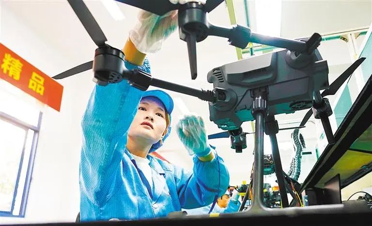 11月28日,普宙科技无人机生产线,工作人员在进行设备检测。该公司与武汉东湖高新区合作,建成了全国首个低空共享无人机应用示范区