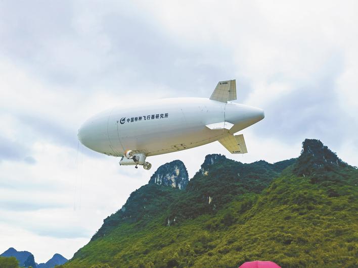 “祥云”AS700载人飞艇飞行中。 (中国航空工业集团特飞所供图)