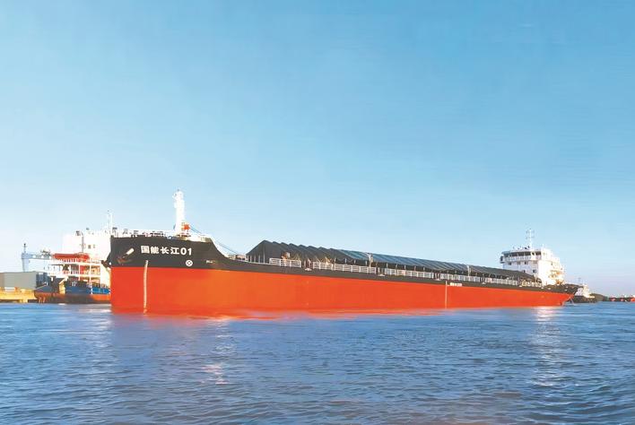 10月21日,国内首艘万吨级甲醇双燃料综合电力推进内河散货船“国能长江01”号顺利交付。 (长江船舶设计院供图)