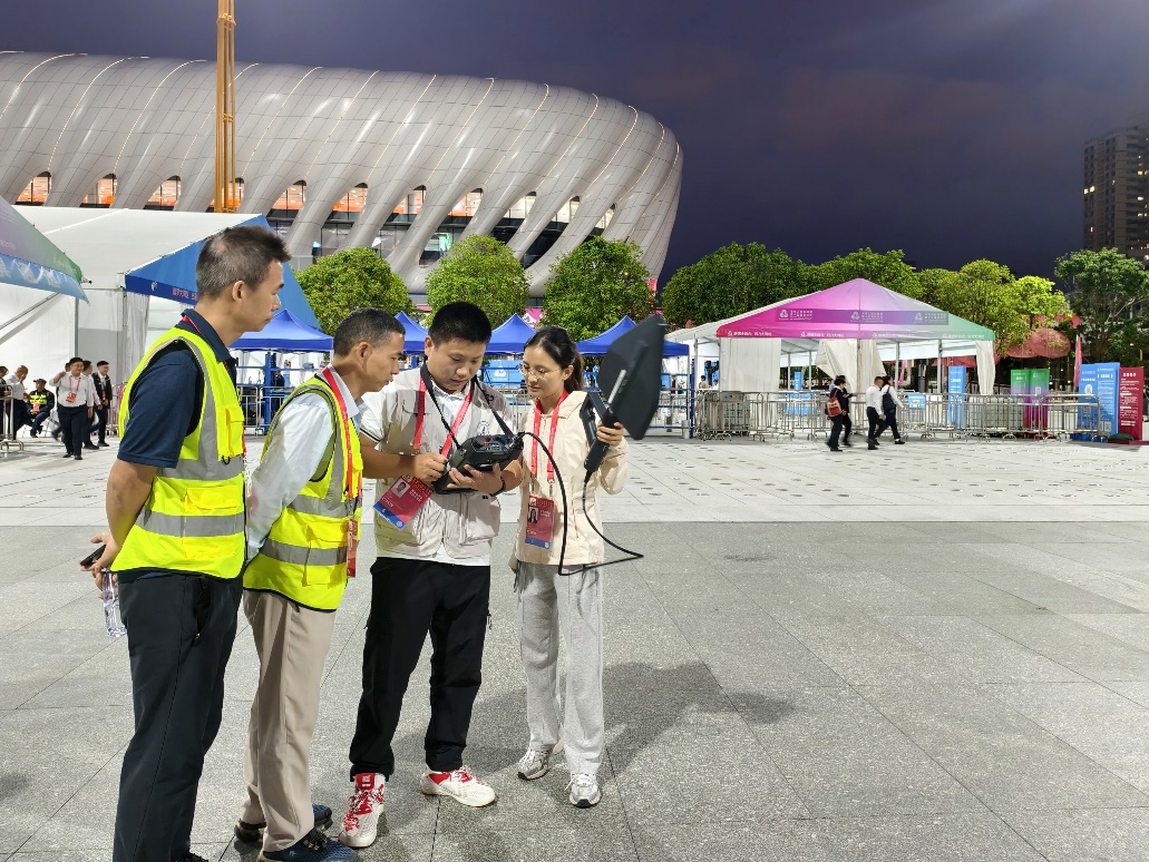 高效率排查,绷紧“安全弦”。赛事期间,创新启用VPN远程监测模式,实时接入深圳固定监测站数据平台,实现赛场内部监测节点的远程控制和数据调用,累计采集核心频段频谱数据37.3GB,做到“全域监测无遗漏、精准研判无误差”,赛前及时排除无线电干扰隐患2起,确保公众通信与赛事设备平稳运行。