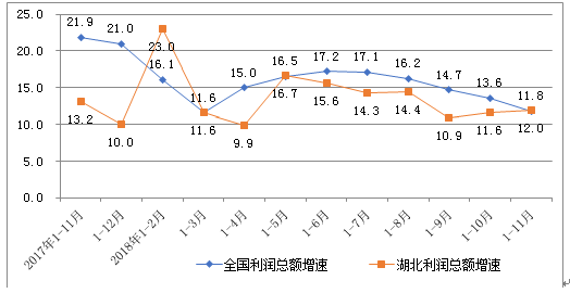 利润增速逆势趋升。1-11月,全省规模以上工业实现利润总额2481.3亿元,增长12.0%,环比加快0.4个百分点(全国环比回落1.8个百分点),高于全国0.2个百分点,近半年来首次高于全国。工业企业主营业务收入利润率为6.32%,同比、环比分别提高0.2、0.12个百分点,居中部第3位(山西、江西、安徽、湖南、河南分别为7.46%、6.52%、5.73%、5.09%、4.74%)。分行业看,41个大类工业中,31个行业利润保持增长,20个行业增速高于全省平均水平,其中建材、钢铁、化工、纺织行业增速分别为64.8%、39.6%、22.9%、21.8%。