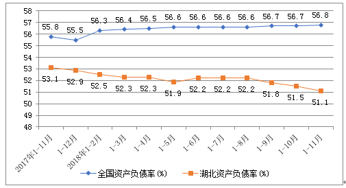 企业负债水平持续下降。1-11月,全省规模以上工业资产合计39703.4亿元,同比增长8.4%;负债合计20290.6亿元,同比增长4.4%;资产负债率51.1%,同比、环比分别下降2.0、0.4个百分点,低于全国5.7个百分点。分不同所有制企业看,国有控股企业资产负债率为50.6%,同比降低3.6个百分点,去杠杆成效更为明显。分行业看,纺织业、农副食品加工、医药、建材行业资产负债率分别降至44.7%、42.5%、41.7%、41.7%。