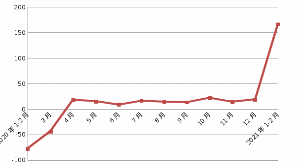 匹配指标“好”。从用电看,2月份,工业用电当月同比增长68.9%,累计增长48.3%(2021年1-2月累计工业用电量208.5亿千瓦时,2019年同期为189亿千瓦时,增长10.3%),其中,制造业用电当月增长86.8%,累计增长60.2%;从PMI看,2月份,湖北制造业采购经理指数(PMI)为50.2%,连续11个月位于临界点以上,延续扩张态势;从货运量看,1-2月份,全省铁路货运量763万吨,增长30.7%;其中2月单月327.5万吨,增长30%;从工业增值税看,1-2月全省累计实现工业增值税212.6亿元,同比增长170%。