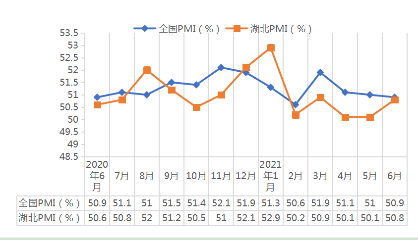 匹配指标进一步向好。6月份,湖北制造业采购经理指数(PMI)为50.8%,较上月上升0.7个百分点,制造业景气度稳中有升,连15个月保持在扩张区间运行1-6月,全省铁路货运量2453.3万吨,增长14.2%;其中6月单月432.2万吨,增长7.9%1-6全省累计实现工业增值税441.4亿元,同比增长75.9%1-6月,全省工业用电量累计增长30.4%,其中制造业用电量累计增长32.6%