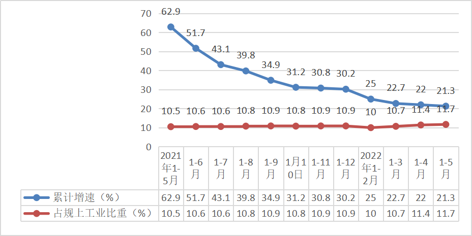5月份,在省委、省政府坚强领导下,全省经信系统高效统筹疫情防控和经济社会发展,加之国内疫情的不断好转、产业链供应链进一步稳定畅通,全省工业生产稳步恢复,5月当月规上工业增加值同比增长5.5%,环比回升0.1个百分点,1-5月规上工业增加值同比增长8%,高于全国平均水平(3.3%)4.7个百分点。