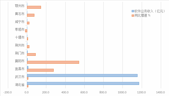 宜昌市、襄阳市和荆门市的软件业务收入均突破亿元、实现爆发增长。其中,宜昌市上半年软件业务收入10.38亿元,同比增长276%;襄阳市上半年软件业务收入1.89亿元,同比增长543%。