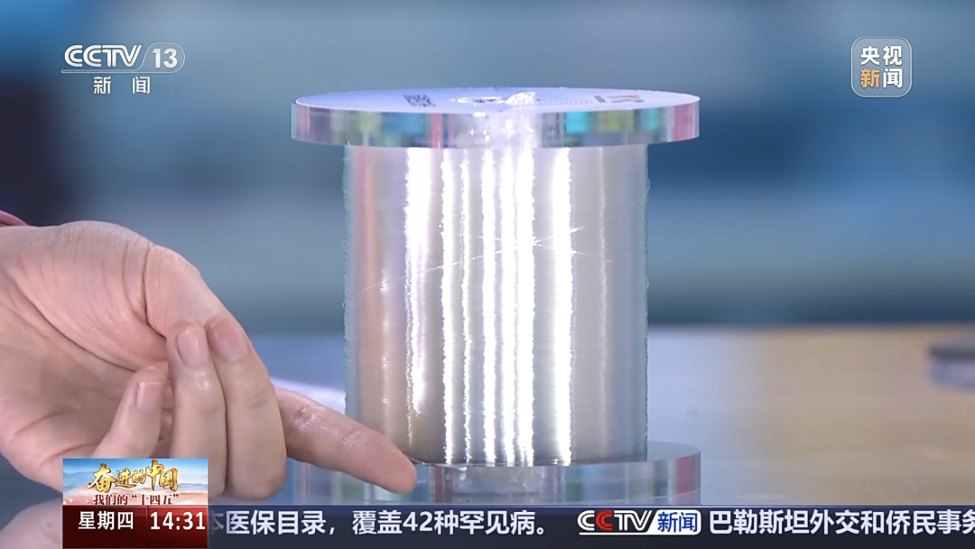 在一家光纤的研制企业,总台记者佘利霞看到了空芯光纤,通过放大的模型可以看到,它是一个中空的结构,这样的结构让光信号在其中传输的时候,就像坐上了一台磁悬浮高铁,助力AI时代的大数据跑得更快。