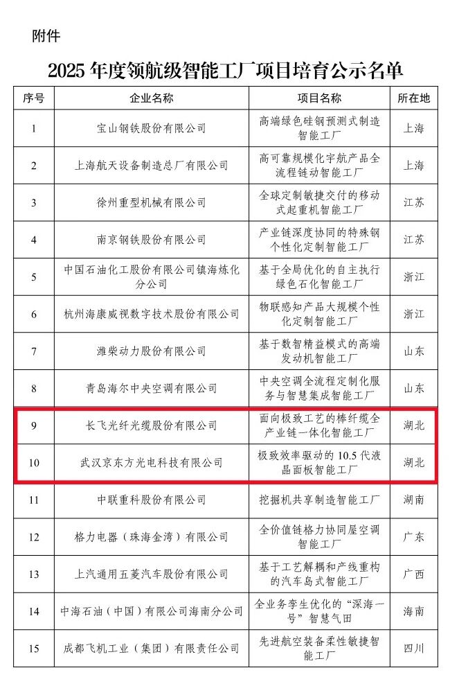 根据《关于开展2025年度智能工厂梯度培育行动的通知》(工信厅联通装函〔2025〕251号),现将拟入选的2025年度领航级智能工厂项目培育名单进行公示,请社会各界监督。如有异议,请在公示期内将书面意见反馈至工业和信息化部装备工业一司(智能制造处)。
