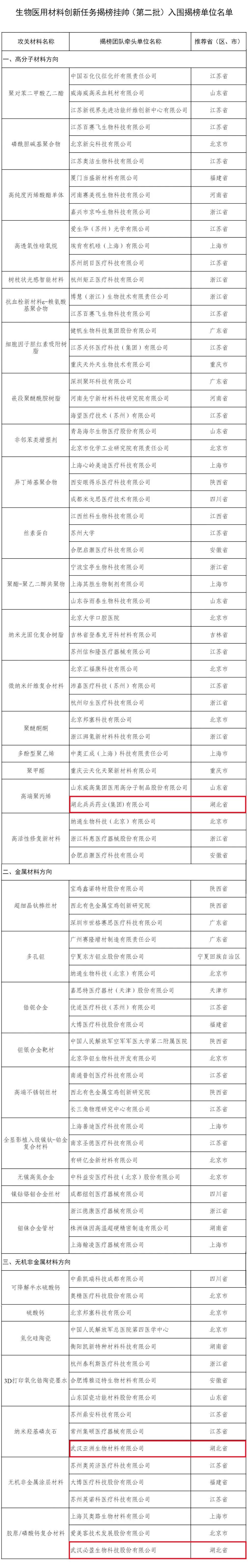 根据《关于组织开展生物医用材料创新任务揭榜挂帅(第二批)工作的通知》(工信厅联原函〔2025〕41号),经各地推荐、综合评审和网上公示,确定了生物医用材料创新任务揭榜挂帅(第二批)入围揭榜单位名单,现予以公布。有关事项通知如下:
